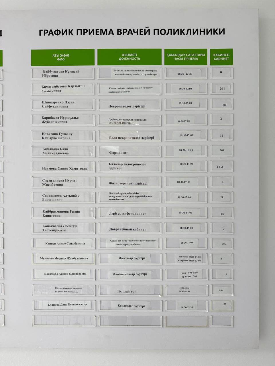 08:30-17:00 Невропатолог - Ильясова Гульбану Кайырболатовна